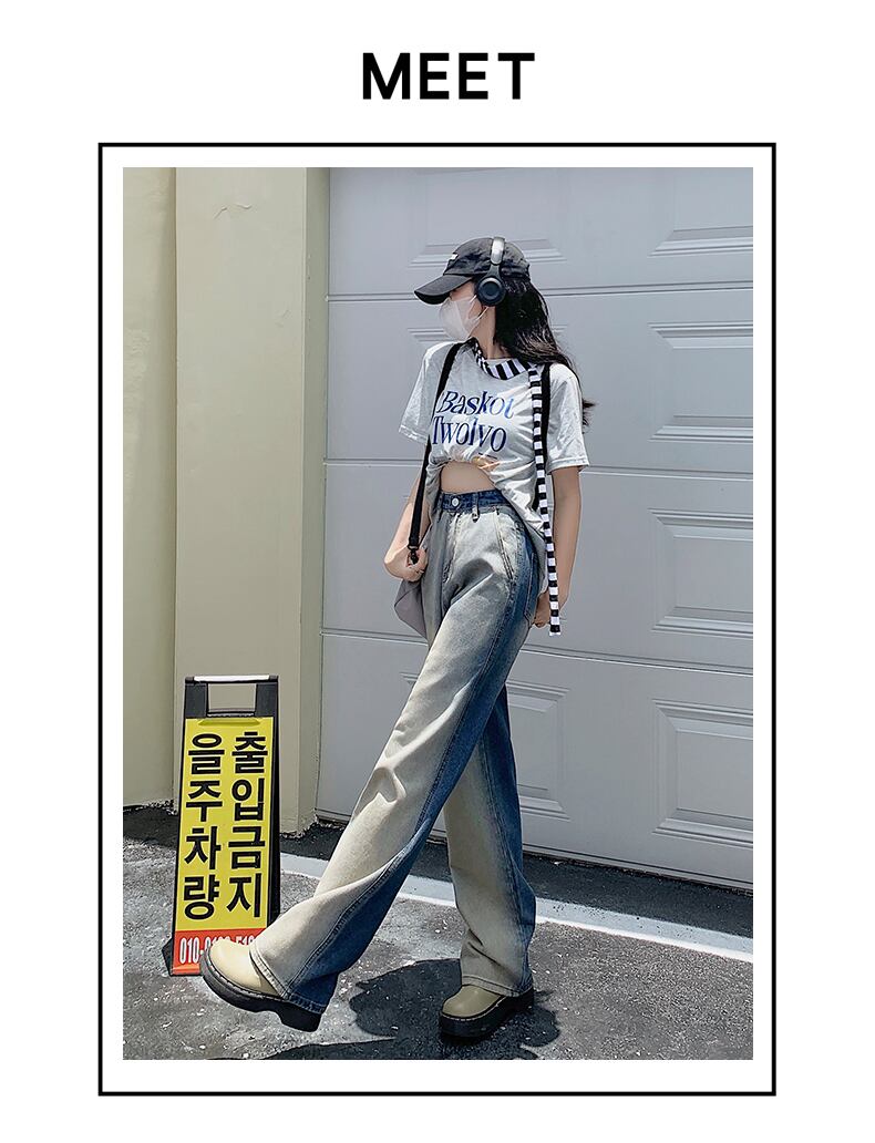 有能なパーソナリティウェア ワイドレッグ ジーンズ レディース ルーズ ストレート チューブは背が高くて薄い ツーカラー オールマッチ ウォッシュド ホワイト ハイウエスト ハイウェスト youqi11885726292
