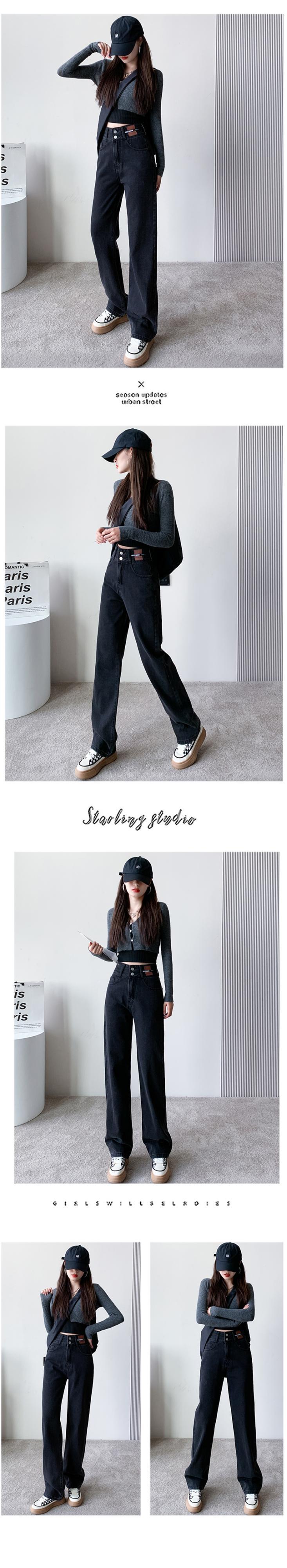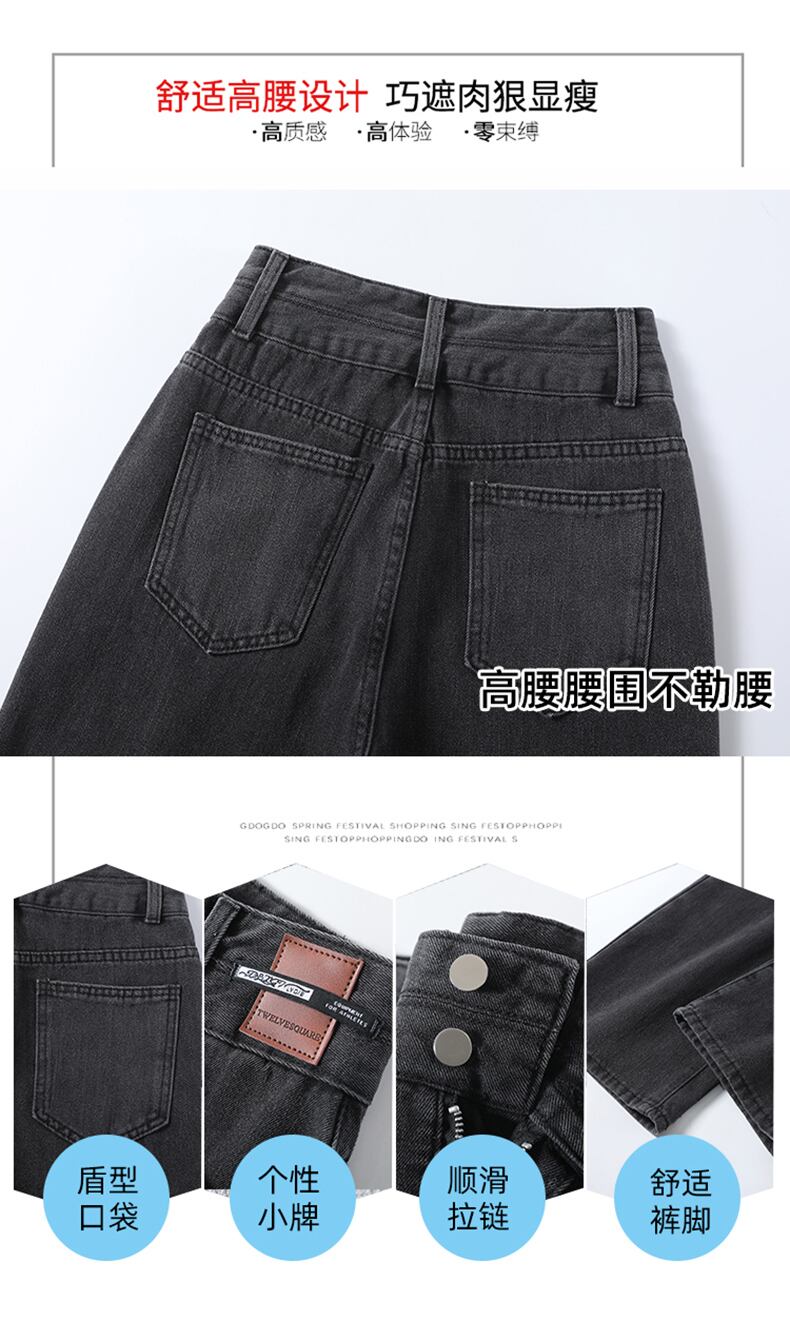 ブラック グレー ストレート ジーンズ女性のたるんだハイ ウエストと薄い 2022 夏の新しいコンタブル、ハイ、ルーズ、ロング ハイウェスト サマー 夏物 youqi85896068362