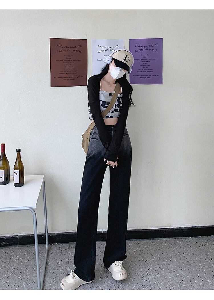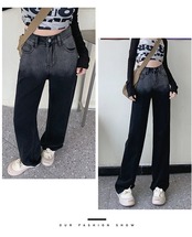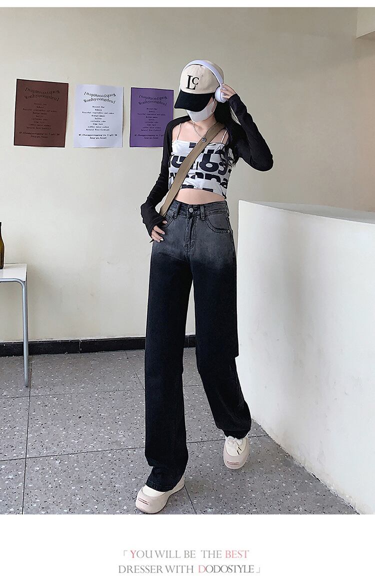 ブラック グレー ワイドレッグ ジーンズ レディース グラデーション ストレート ドレープ ルーズ 2022 新しい ハイストリート モップ パンツ youqi41548911189