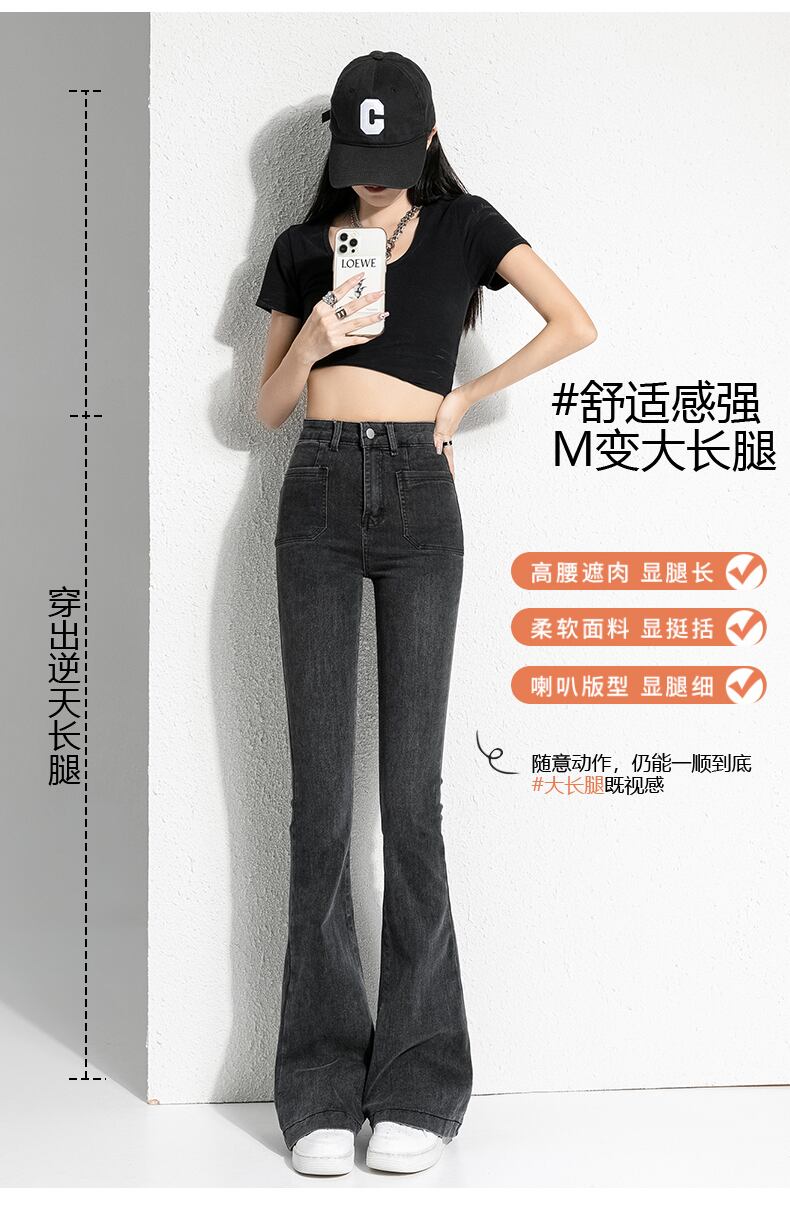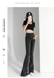 ウエスト細めフレアパンツ in ハイストリート 潮流 春秋新作 グレー 黒 ジーパン レディース デザインセンス パンツ オールマッチ レッド ブラック スプリング 春物 オータム 秋物 youqi18819545584