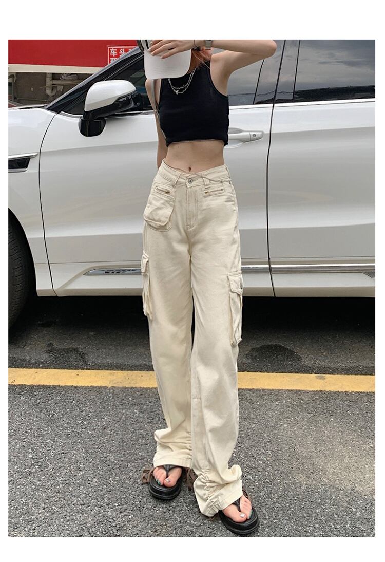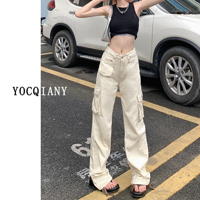 アメリカのハイウエストストレートジーンズ女性緩いストリートマルチポケットヒップホップオーバーオール夏 2022 ハイウェスト サマー 夏物 ポケット多め youqi1229199506