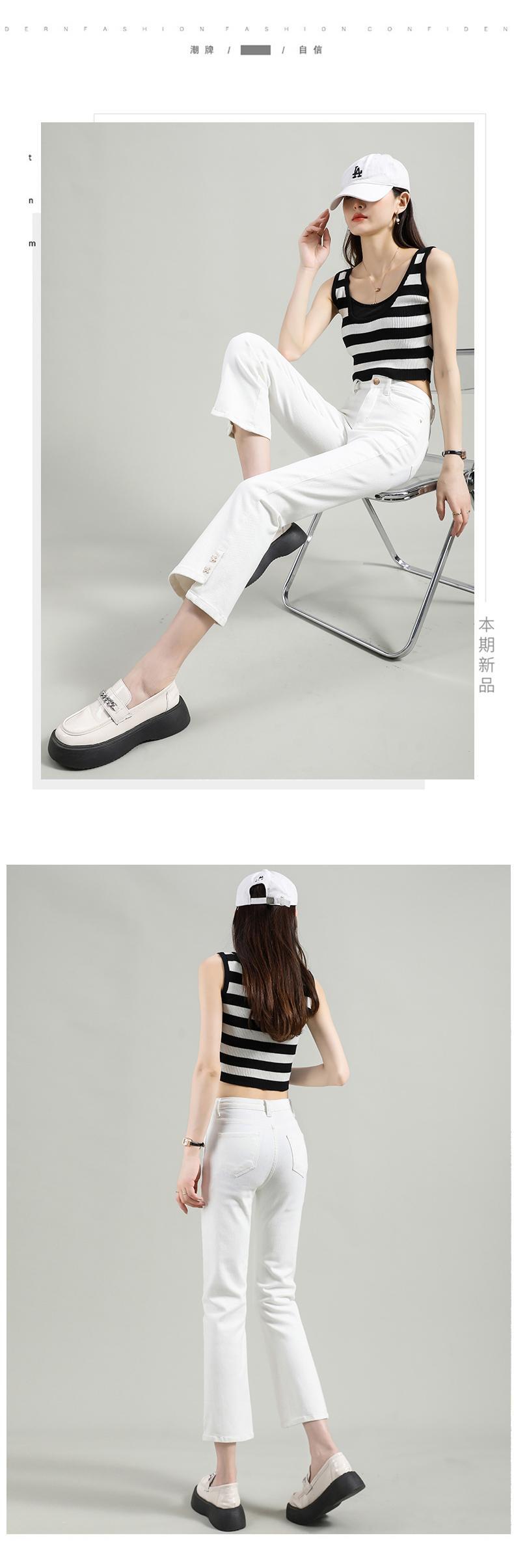 スリットウィーブジーンズ レディース 春秋 ウエスト細め 2022 ホワイト スモール 九点フレアパンツ レッド スプリング 春物 オータム 秋物 youqi77689118736