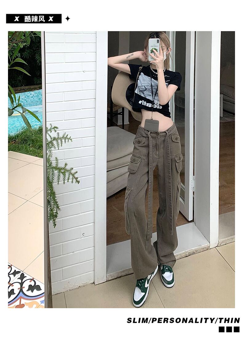 アメリカンオーバーオール 2022年夏 ハイウエスト 薄手 ゆったり ストレート チューブドレープ ワイドレッグ ハイストリート ヒップホップ ジーンズ レディース 潮流 ハイウェスト サマー 夏物 ワイドパンツ youqi60367017959