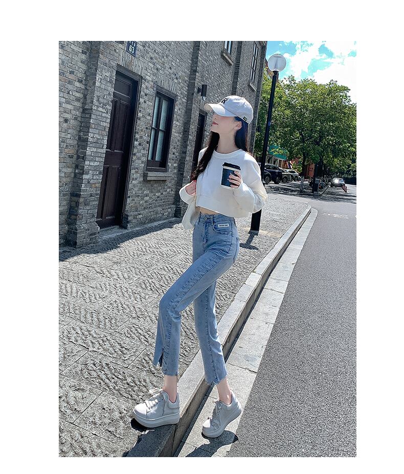 ストレートハイウエストスリットスモールマンオールマッチタバコパイプジーンズは細くて背が高く、8点と9点のスリムなレトロブルー youqi85034966879