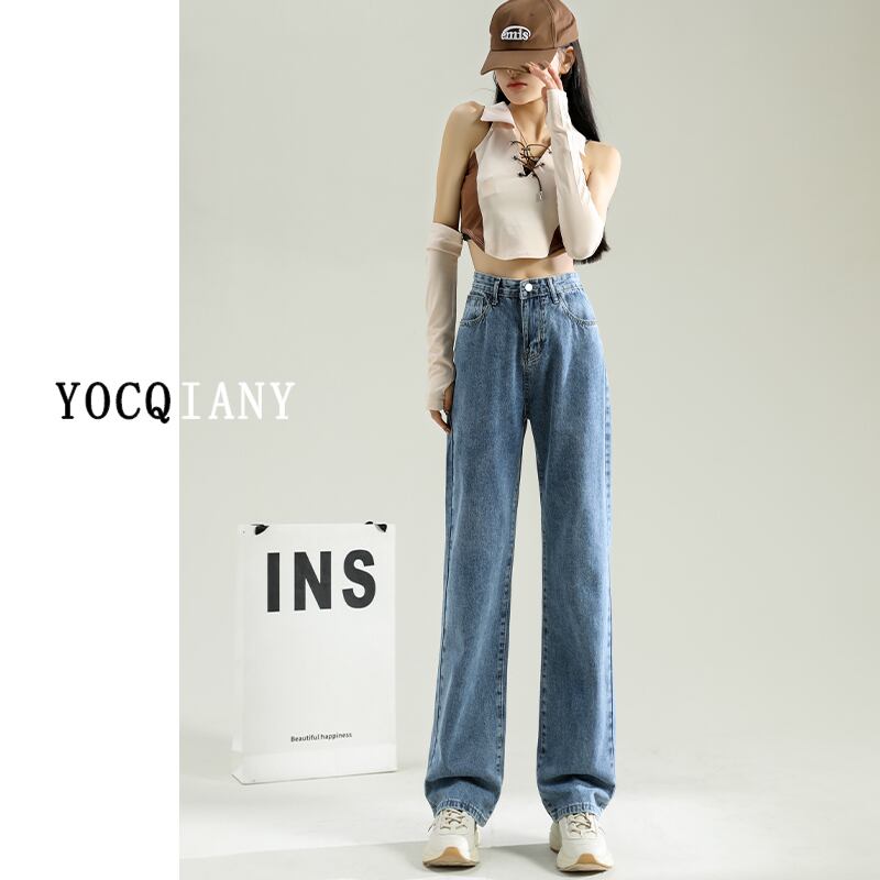 レトロ ブルー ストレート ハイウエスト ワイドレッグ ジーンズ 女性の小さな体型は細身で背が高く、ハイストリートは良い夏のルーズです サマー 夏物 youqi42241760938
