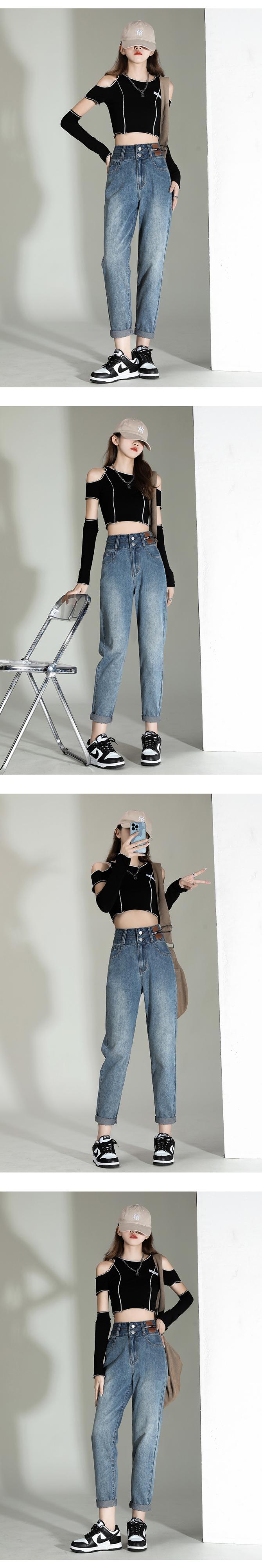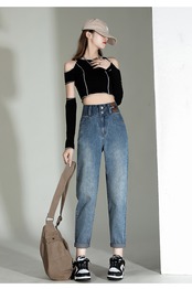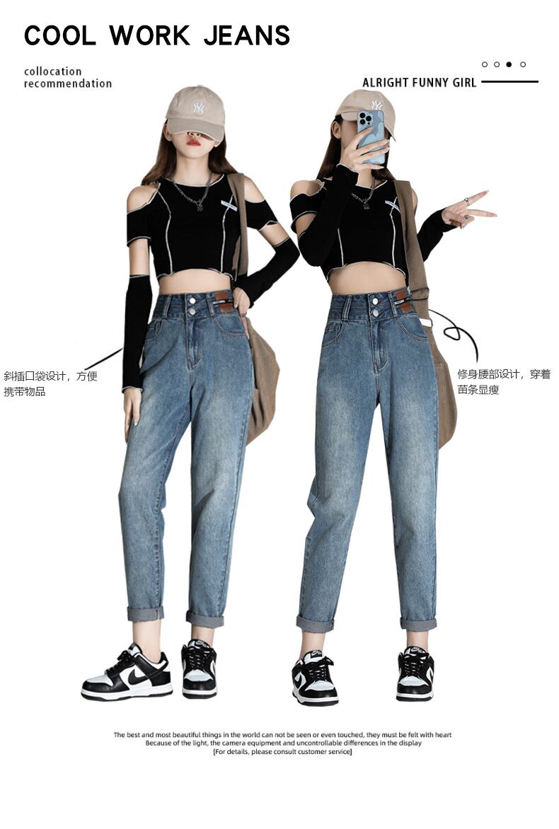 甘涼風人気のハイウエストハーレムパンツダブルボタンラディッシュダッドジーンズ子供ゆったり薄手レトロブルーオールマッチ ハイウェスト 大人ガーリー スウィート キュート カジュアル youqi47833336252