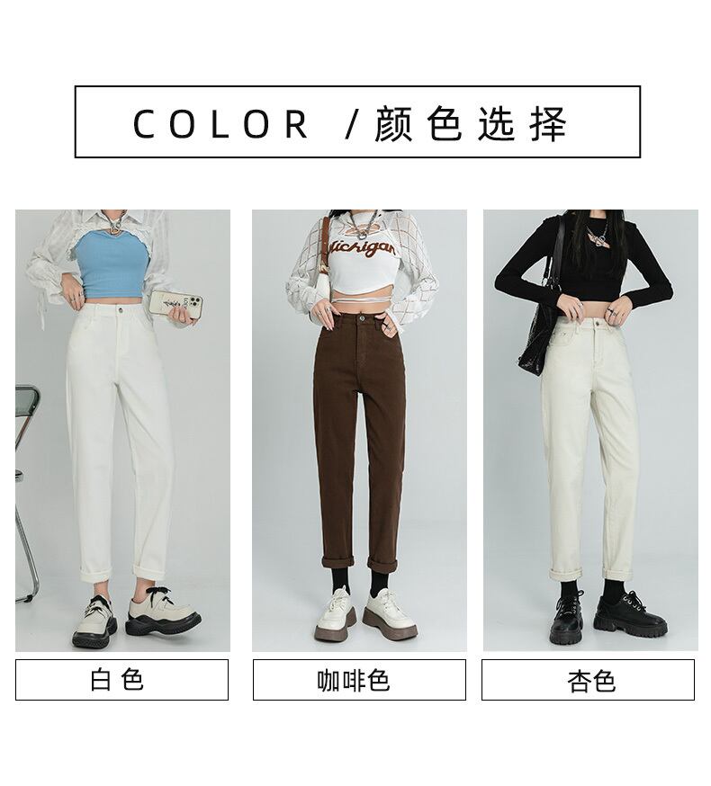 2022 初秋の新小弾性ハーレムパンツハイウエストストレートルーズパパパンツアプリコットジーンズ女性 ハイウェスト エラスティック 伸縮 オータム 秋物 youqi43522319341