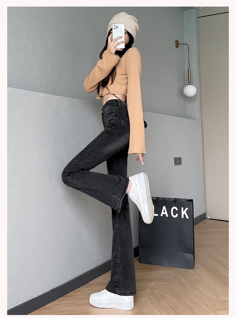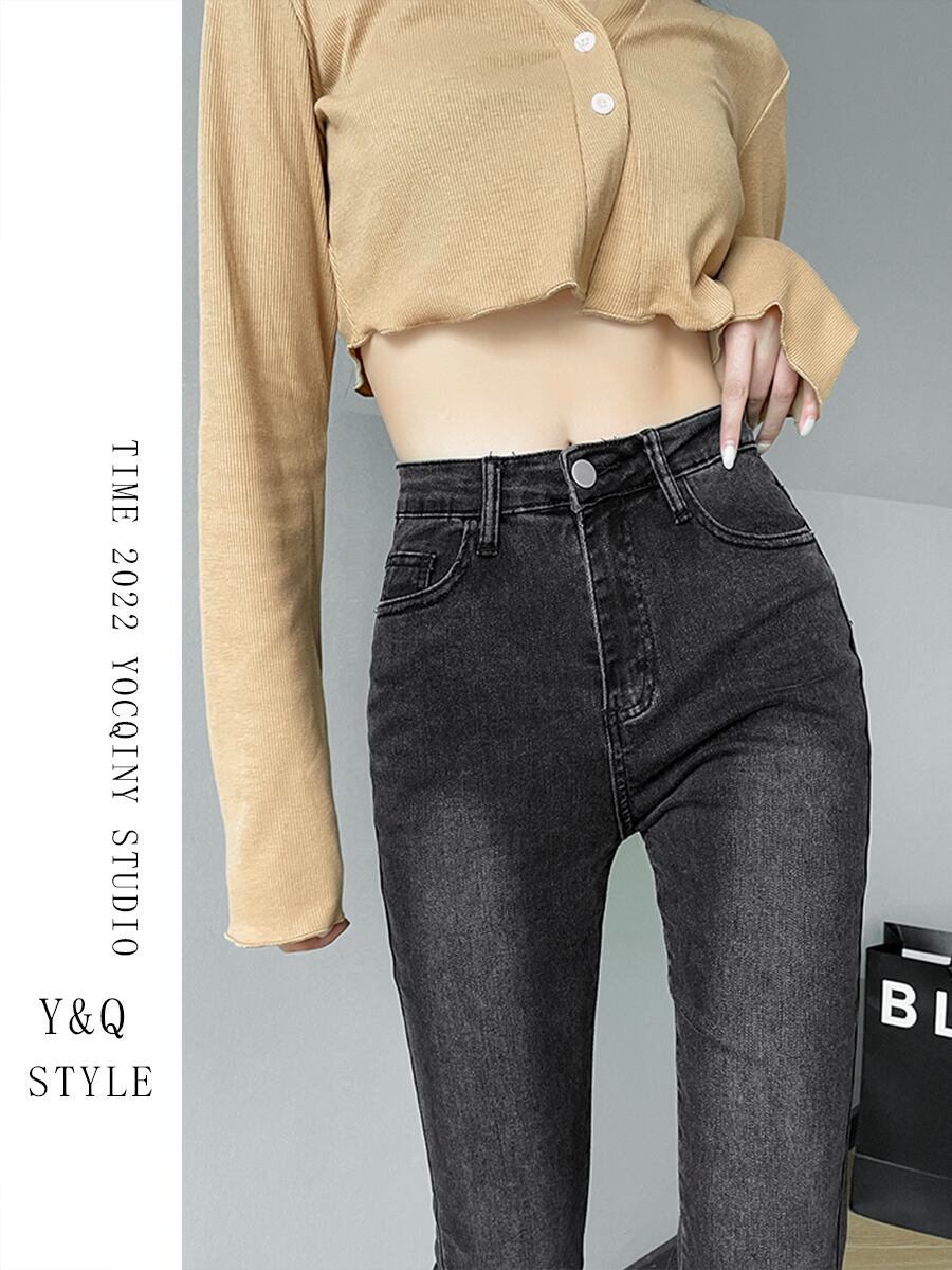 スモーク グレー フレア ジーンズ デニム女性ハイ ウエスト タイト 2022 初秋の新スタイル痩身シックなモップ レトロ潮 ハイウェスト レッド オータム 秋物 youqi45666376140