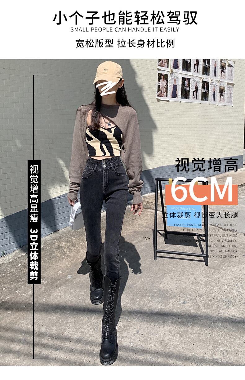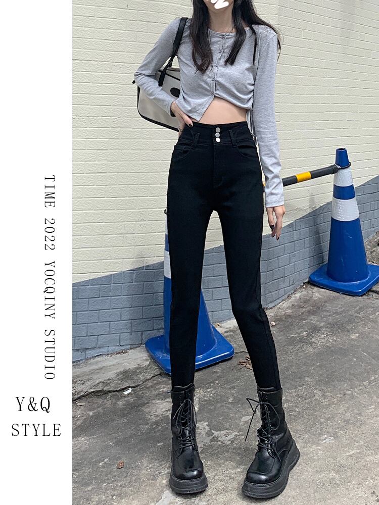ウエスト ジーンズ女性の 9 点弾性鉛筆黒パンツ 2022 秋の新しいニッチ 3 ボタン デザイン ブラック エラスティック 伸縮 オータム 秋物 youqi37006067737
