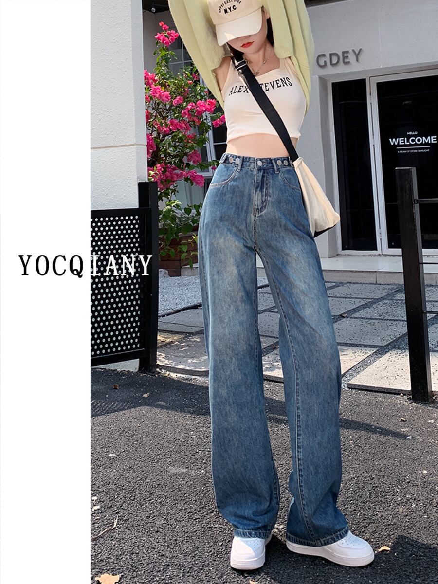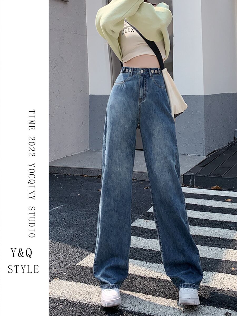 レトロジーンズレディースワイドレッグたるみハイウエスト2022春と秋の新しいスタイルの痩身オールマッチルーズストレートレッグモップパンツ スプリング 春物 オータム 秋物 youqi25357729121