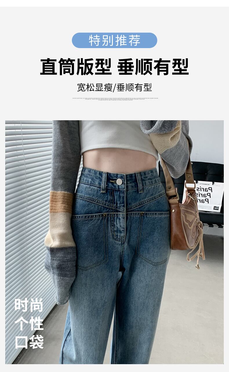ニッチデザインセンス秋ハイウエストワイドレッグスリムモップジーンズ女性緩い 2022 新レトロブルーオールマッチ ハイウェスト オータム 秋物 ワイドパンツ youqi93497802780