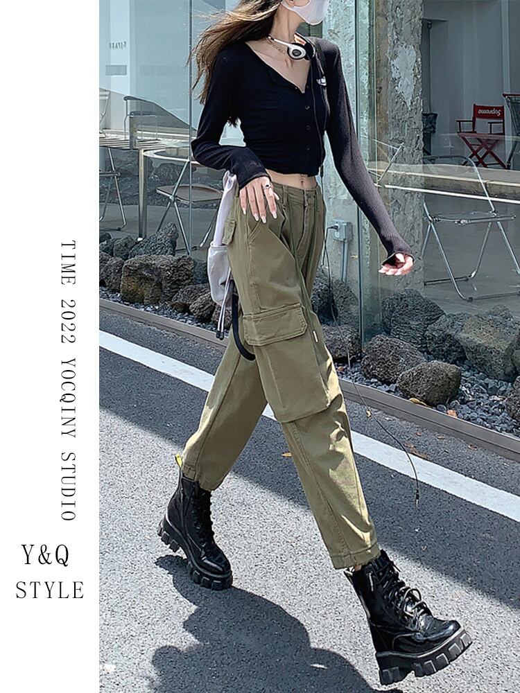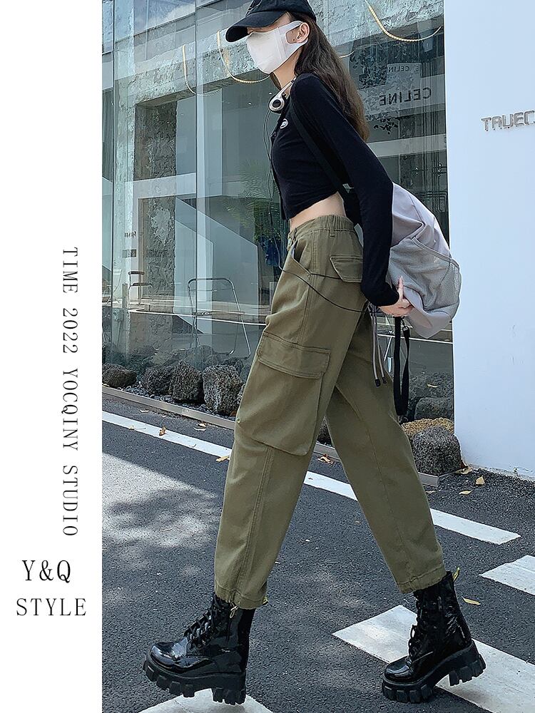 アーミーグリーン オーバーオール レディース ハーレムパンツ 巾着 ハイウエスト ジーンズ レディース 春秋オールマッチ ワイドレッグ 大根おやじパンツ 潮 スプリング 春物 オータム 秋物 youqi53599820970
