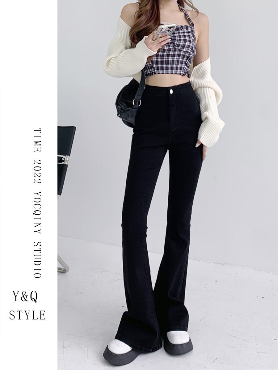 ウエスト桃尻マイクロフレアジーンズ女性の春と秋 2022 薄い新しいスタイルオールマッチハイストリートズボンタイドイン スプリング 春物 オータム 秋物 youqi46217220457
