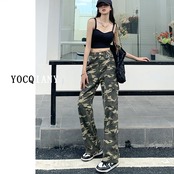 2022 秋の新ゆるいワイドレッグデニム迷彩パンツ女性のハイウエストと薄いアメリカのレトロなオーバーオール ハイウェスト オータム 秋物 youqi24639657516