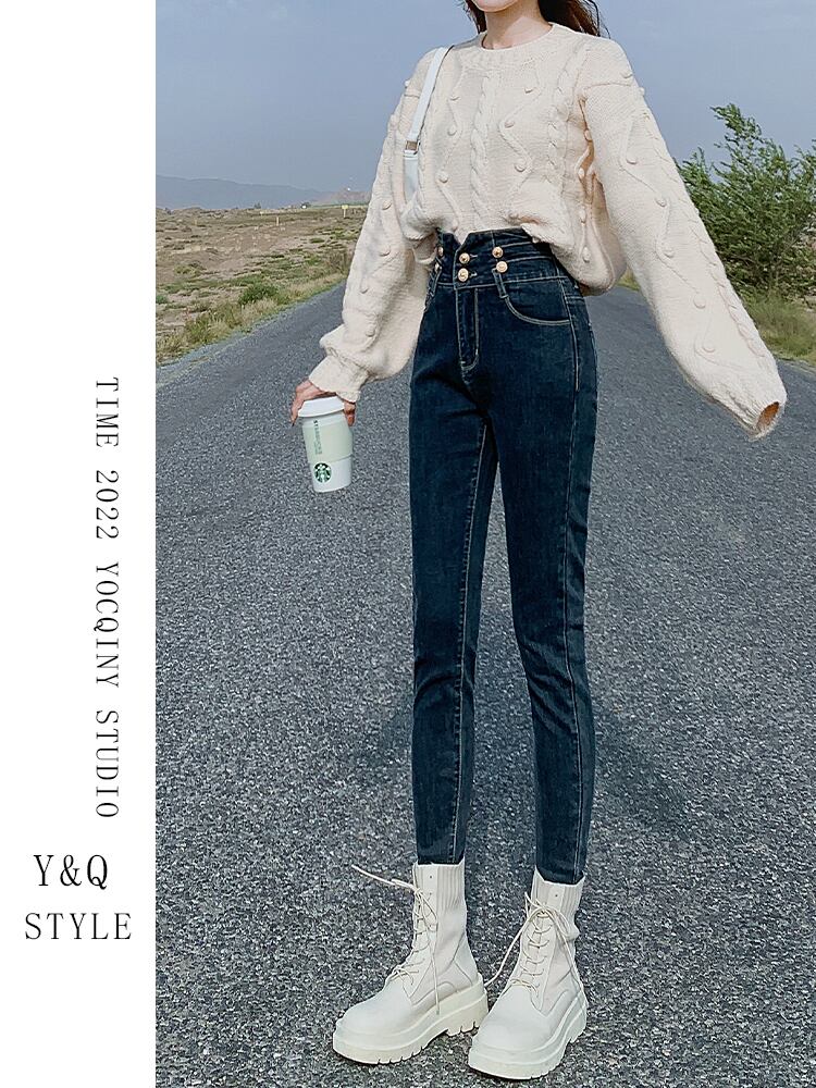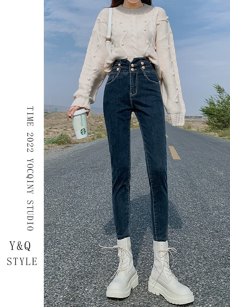 2022 秋と冬の新しいハイウエストジーンズ女性のヒップリフティング弾性スキニーパンツ 9 番目は薄く、背が高く、ベルベット エラスティック 伸縮 オータム 秋物 ウィンター 冬物 youqi32901897237