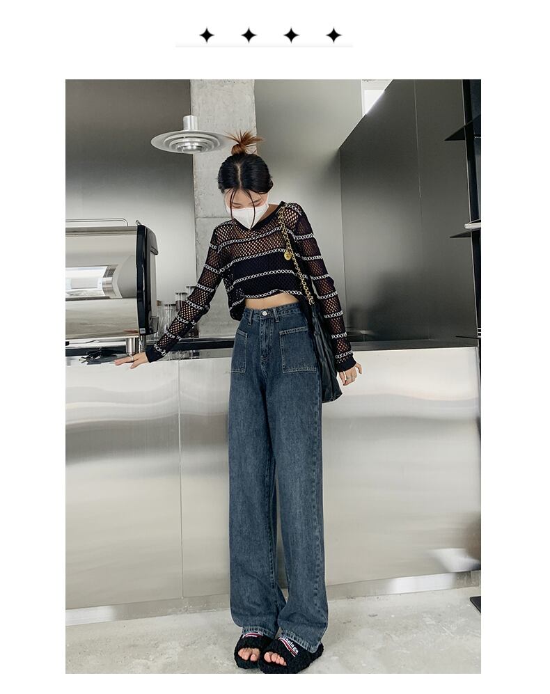 ブルーグレーワイドレッグハイウエストジーンズ女性の 2022 新しいスタイルの薄いパンツインハイストリートトレンディなストレートパンツ youqi41255256487