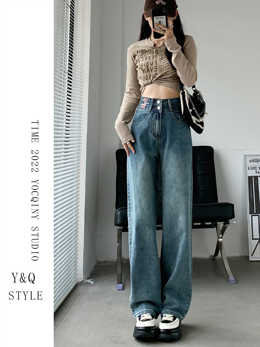 -2022年春と秋の女性用ウエストワイドレッグジーンズは、薄く、ストレートで、ドレープがあり、モップパンツで、ハイストリートの雰囲気のトレンドを取り入れています スプリング 春物 オータム 秋物 youqi45589908161