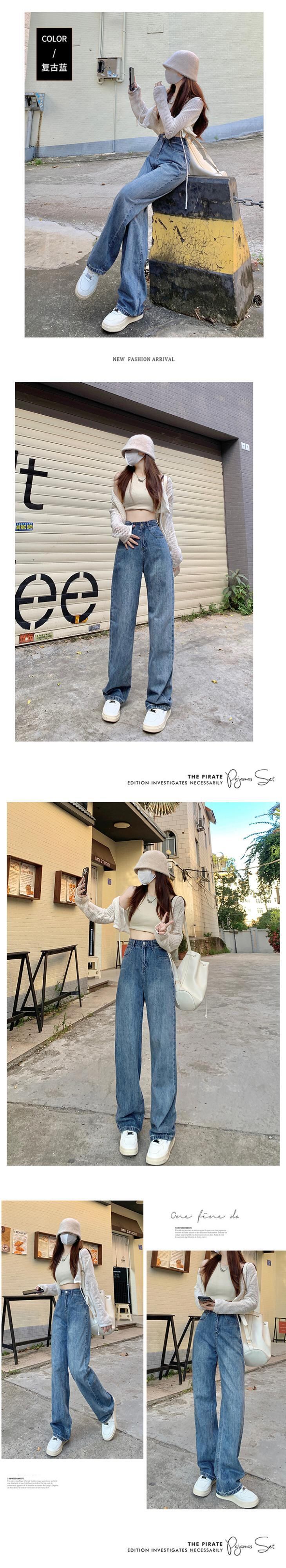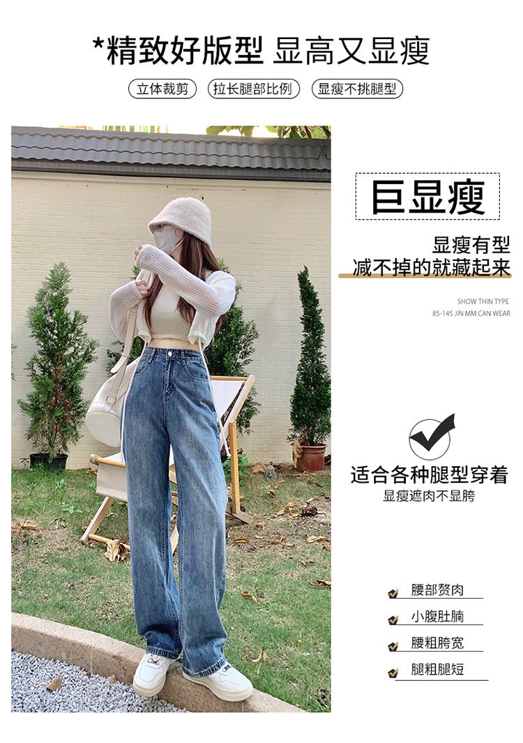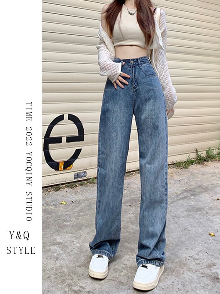 レトロなブルー ストレート ハイ ウエスト ジーンズ女性の 2022 春と秋の新しいルーズ オールマッチ ドレープ ワイドレッグ モップ パンツ ハイウェスト スプリング 春物 オータム 秋物 youqi35611808230