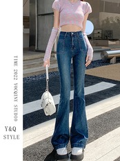 2022年新作今年人気のハイストリートインタイドマイクロパンツハイウエストジーンズレディースデザインセンスが細く小さいV ハイウェスト youqi816032904
