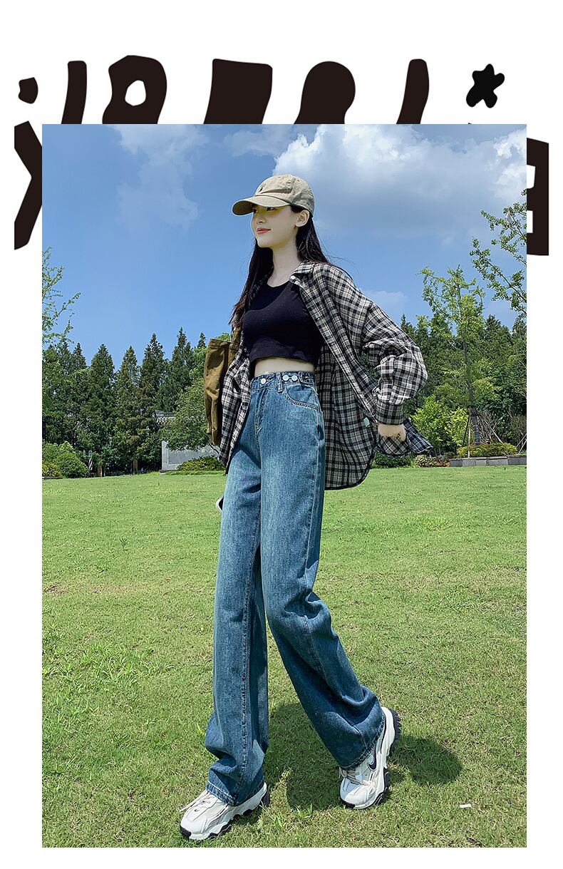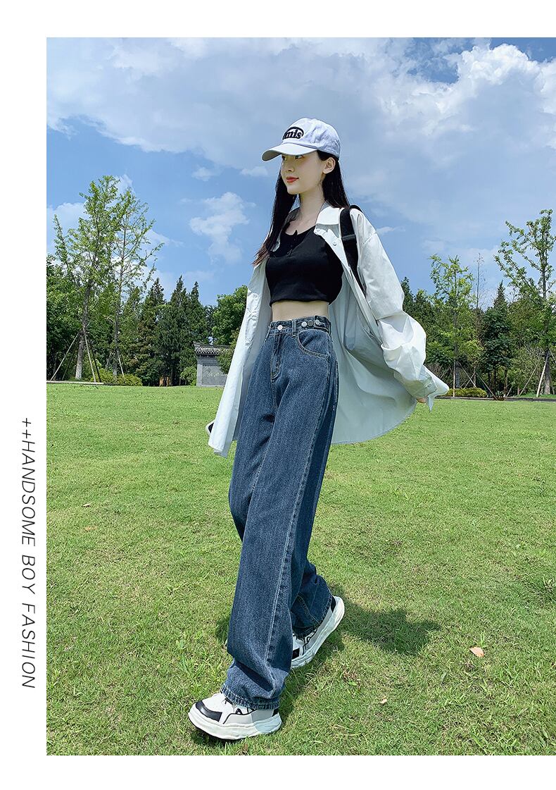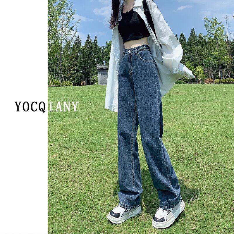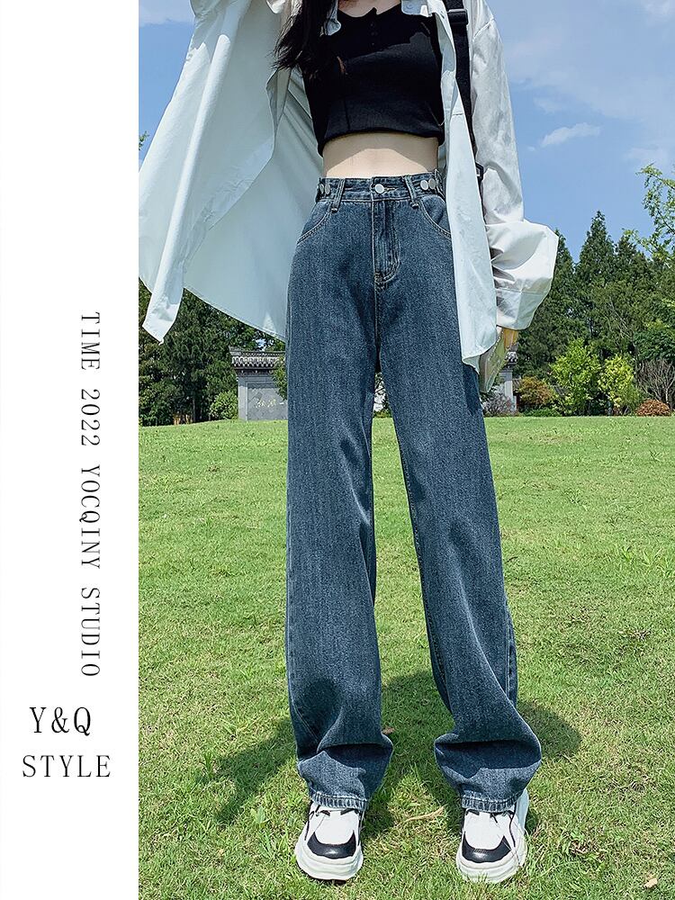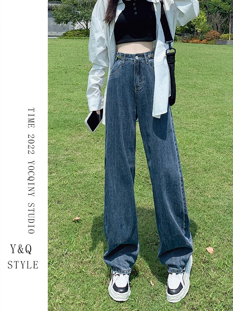 ブルーグレーワイドレッグパンツデニムレディースハイウエスト垂れ下がる2022年夏新作初秋ストレートルーズオールマッチモップフロア ハイウェスト サマー 夏物 オータム 秋物 youqi7975180855