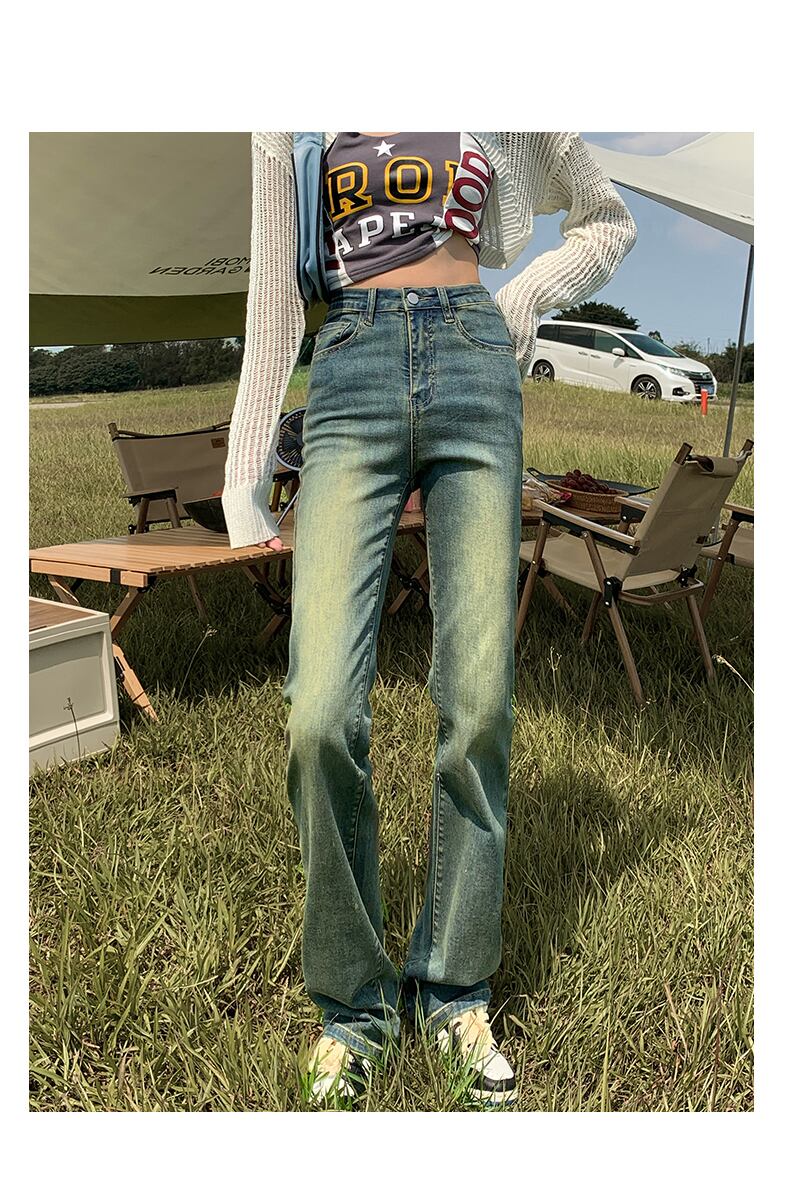 アメリカン レトロ ノスタルジック ストレッチ ストレートレッグ ジーンズ レディース 秋の新作 スリムフィット 細身 丈長 ハイストリート 潮流 ロング オータム 秋物 youqi86846139352