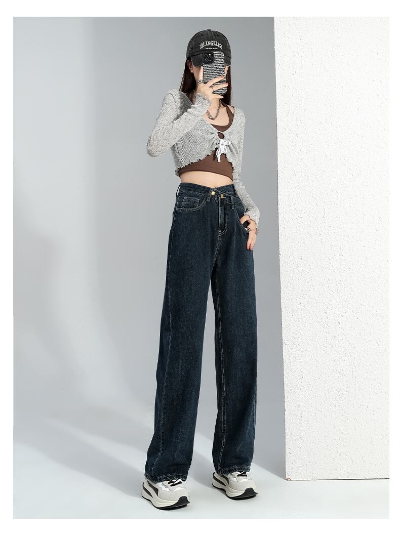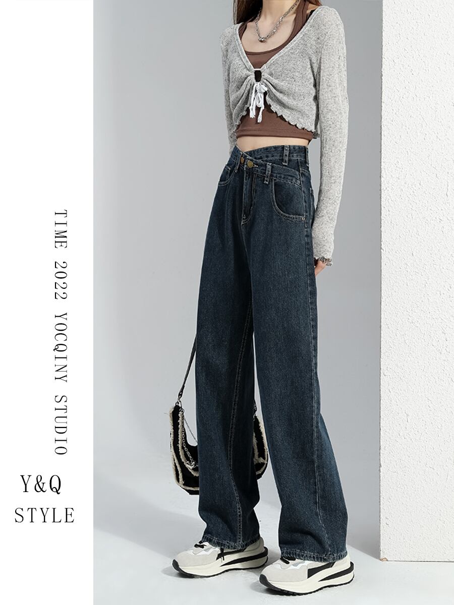 -ウエストワイドレッグパンツジーンズレディースルーズ2022年秋の新スタイルスリミングオールマッチドレープモップパンツ春と秋 スプリング 春物 オータム 秋物 youqi98015401567