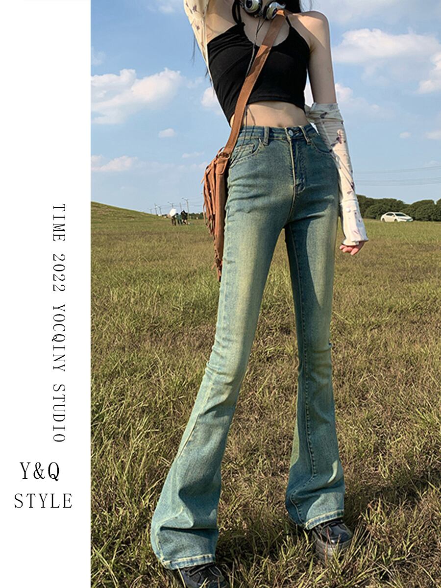 ノスタルジックなストレッチ ウェルト ジーンズ女性ヨーロッパとアメリカ 2022 秋の新しいスタイルの痩身レトロ ストレート バレル長くモップ床 オータム 秋物 youqi67140608751
