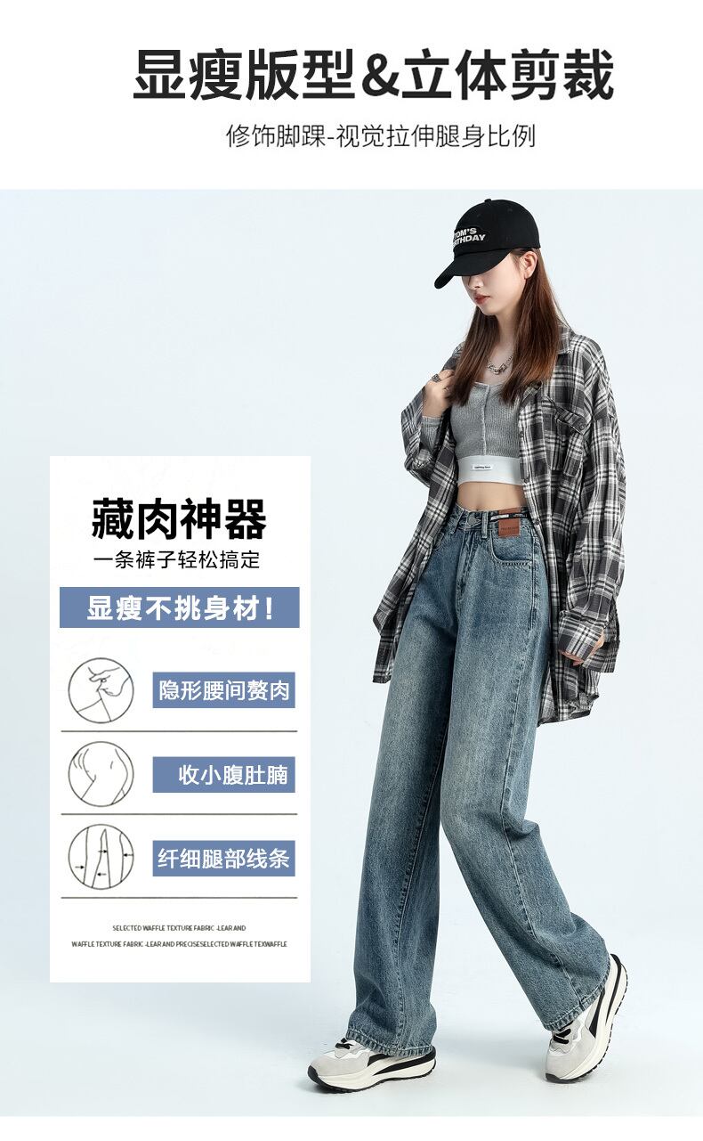ストリート レトロ ブルー ウエスト ストレート ジーンズ レディース 2022年 小さめ ゆったり 下垂 ワイドレッグ 細身 床拭き ワイドパンツ youqi74788467561