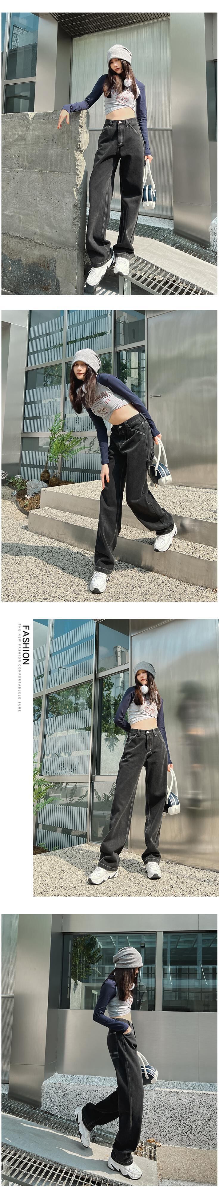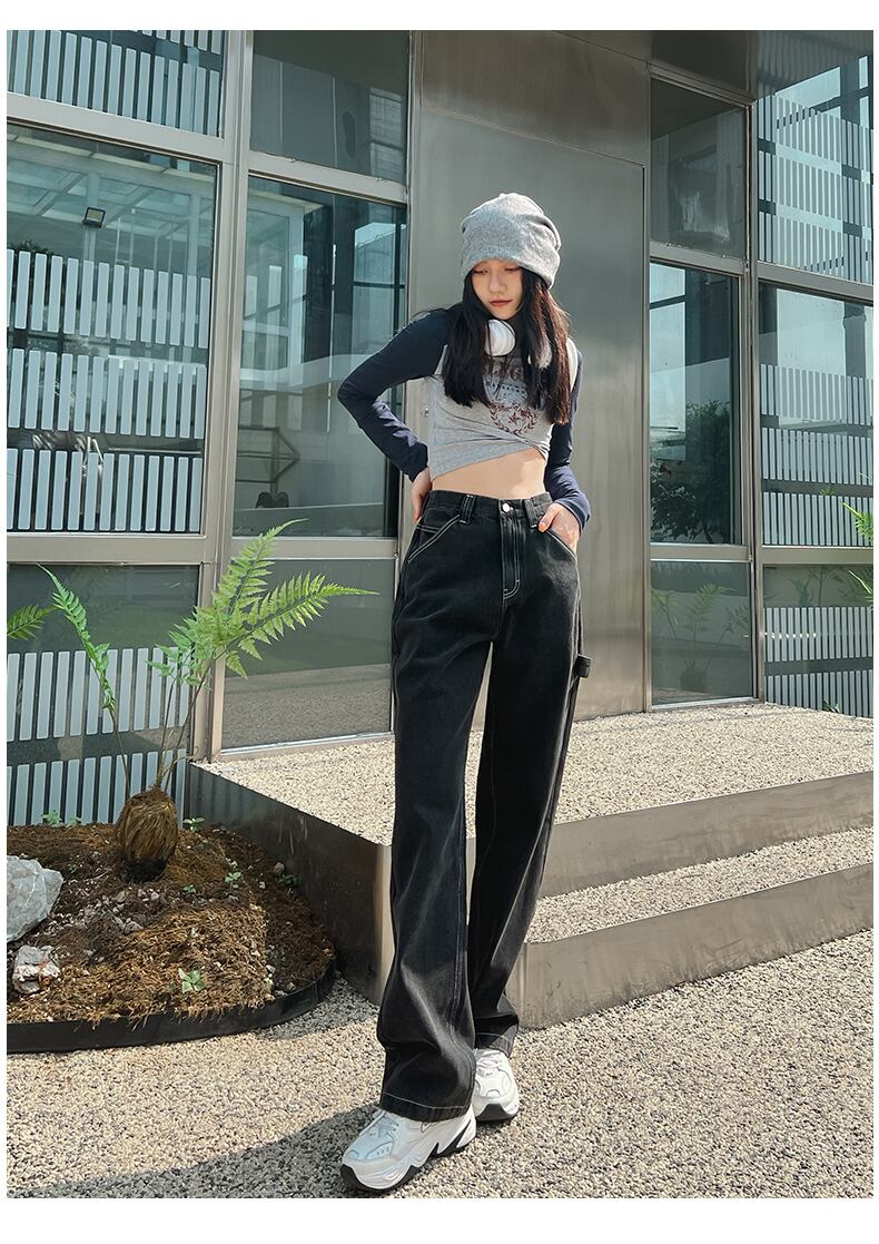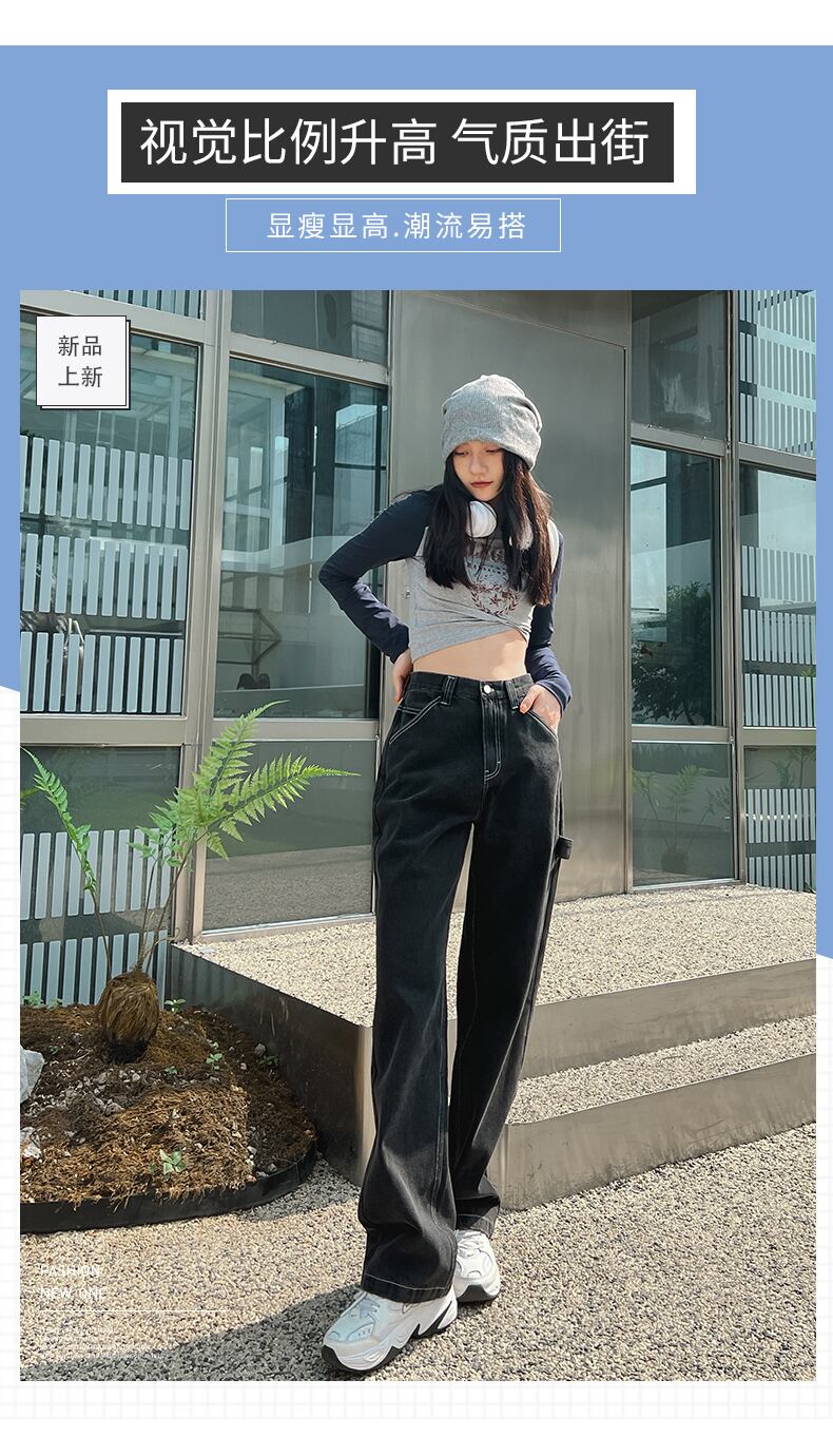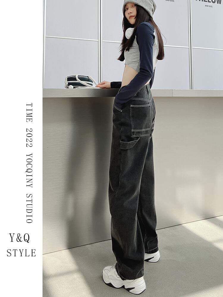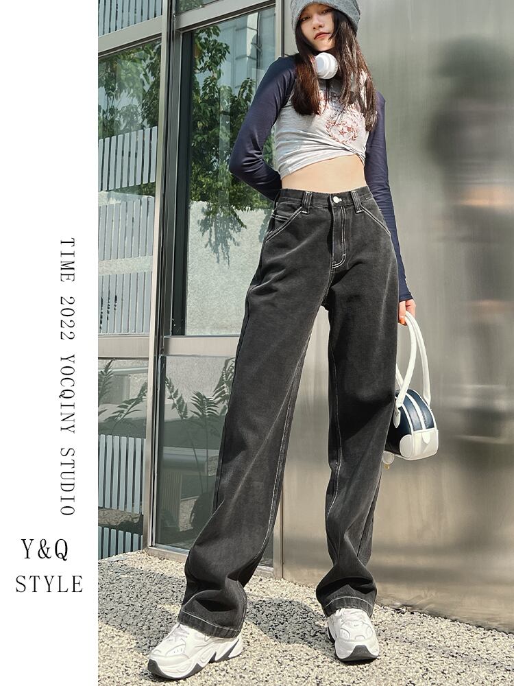 ヨーロッパとアメリカのinsブラックストレートハイウエストジーンズの女性の2022年の秋の新しいツーリングワイドレッグパンツは薄くて用途が広い ハイウェスト オータム 秋物 ワイドパンツ ヨーロピアン youqi90379434596