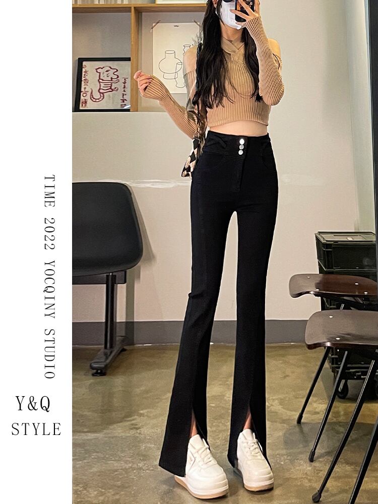 ストリート バイブ パンツ マイクロスリット ジーンズ レディース 2022年 春秋新作 ハイウエスト 薄手 ワイドレッグ モップパンツ 潮 スプリング 春物 オータム 秋物 youqi9451310065