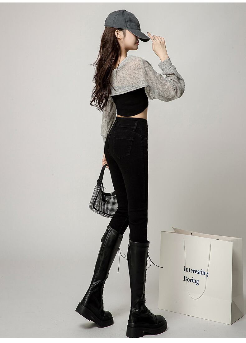 黒のスキニージーンズの女性のハイストリートの春と秋は、薄くてハイウエストです ハイウェスト ブラック スプリング 春物 オータム 秋物 youqi50338360997