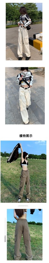 ストリート アメリカン ヒップホップ オーバーオール レトロ ハイウエスト ストレート パンツ レディース ゆったり マルチポケット ホワイト ワイドレッグ カジュアルパンツ ハイウェスト ポケット多め youqi38132257677