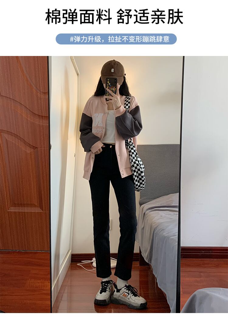 ブラックストレートレッグパンツデニムレディースルーズエラスティック春と秋の2022年の新しいハイウエストの薄い秋の9点シガレットパンツ 伸縮 スプリング 春物 オータム 秋物 youqi22712945043