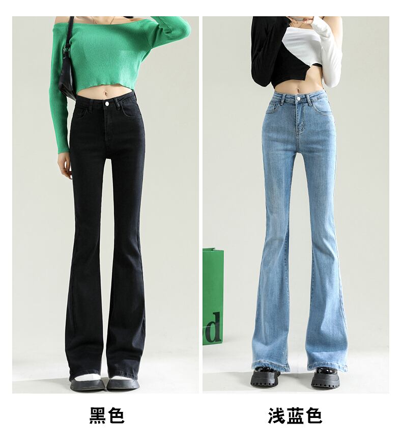 -ウエスト、薄い、マイクロ フレア パンツ、トール ジーンズ、女性の背の高い、薄い、黒とグレー オールマッチ春と秋のハイ ストリート ブラック スプリング 春物 オータム 秋物 youqi22968704560