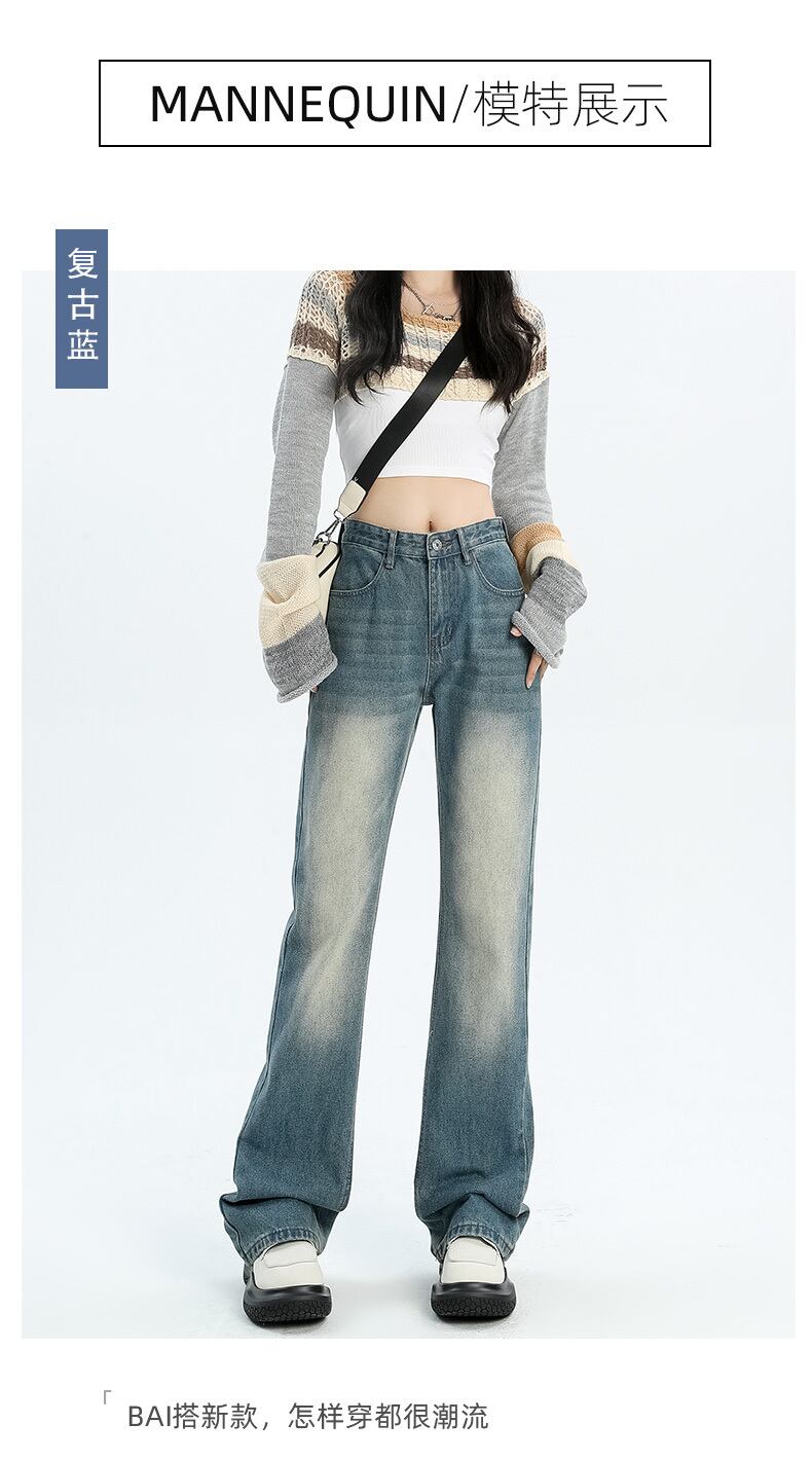 レトロなブルー スタイルのハイ ウエスト マイクロ フレア ジーンズ女性の 2022 新しいルーズで薄いワイドレッグ モップ フレア ズボン ハイウェスト レッド youqi60165926428