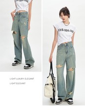 2022年の新しいワイドレッグジーンズの女性の個性の大きな穴と古いルーズなハイウエストのストレートレッグパンツは小さくて薄い youqi9045079380