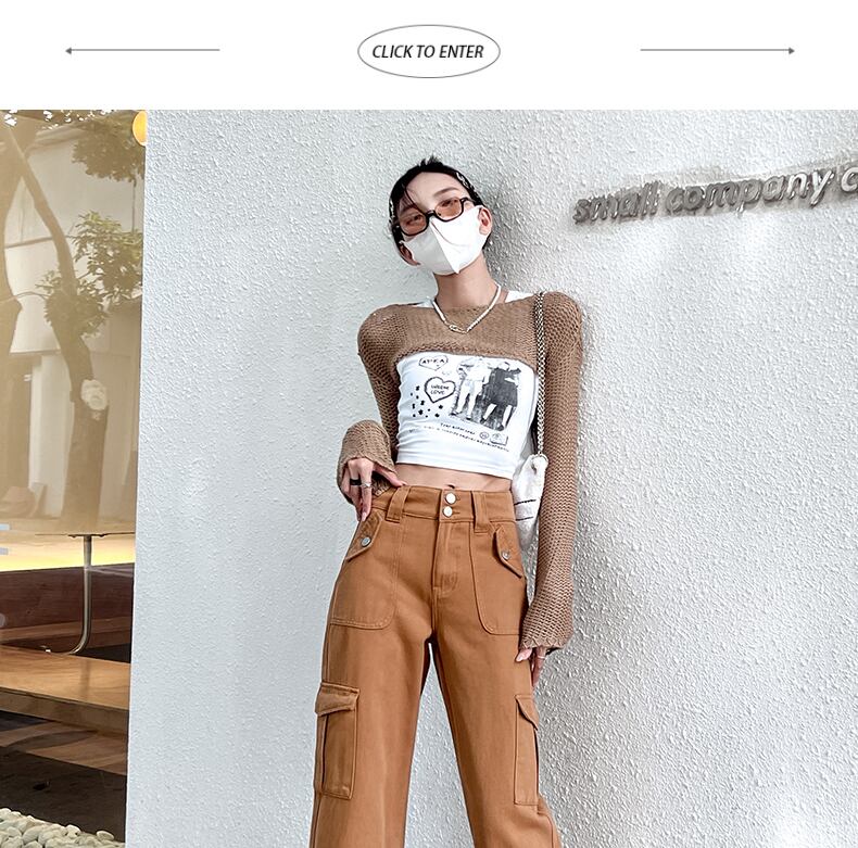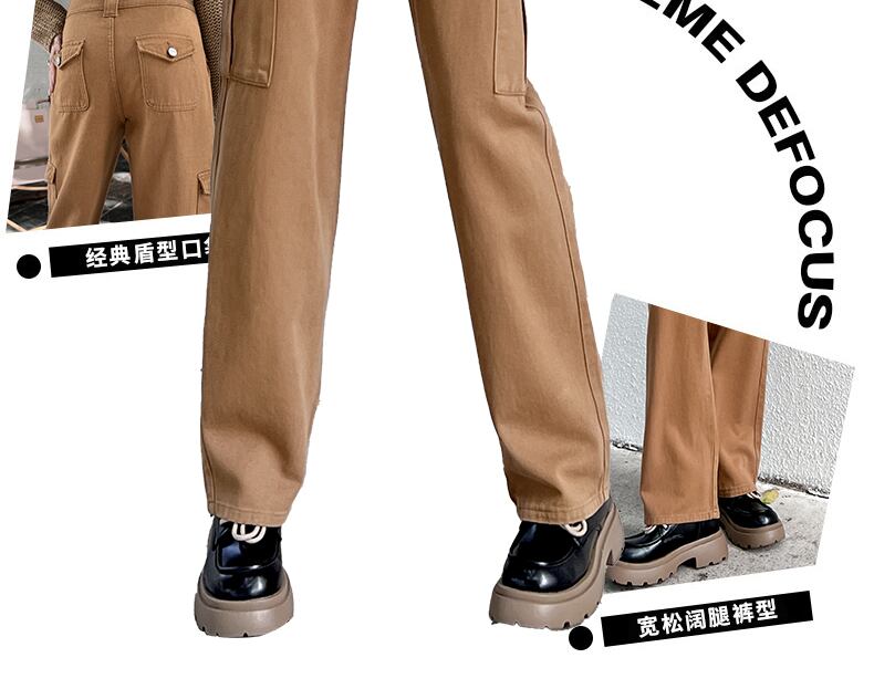 アメリカン レトロ キャメル ワークウェア ハイ ウエスト ジーンズ レディース ショー シン ワイドレッグ モッピング パンツ ダブル ボタン ストレート パンツ ルーズ タイド ハイウェスト ワイドパンツ youqi81890146200