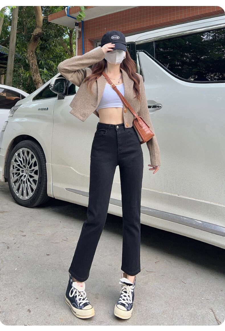 秋の新弾性小さなストレート パイプ パンツ ハイ ウエスト ジーンズ女性の 8 点 9 点パンツ小背と多目的 ハイウェスト エラスティック 伸縮 オータム 秋物 youqi64424285381