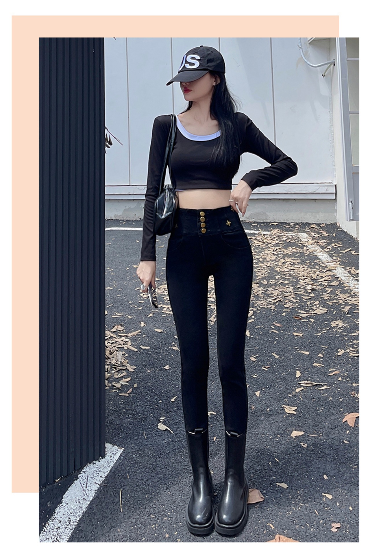 ブラックペンシルパンツデニムレディースハイウエストタイト2022春秋新作スタイル薄手秋冬オールマッチシックペンシルパンツ ハイウェスト スプリング 春物 オータム 秋物 ウィンター 冬物 youqi1014064433