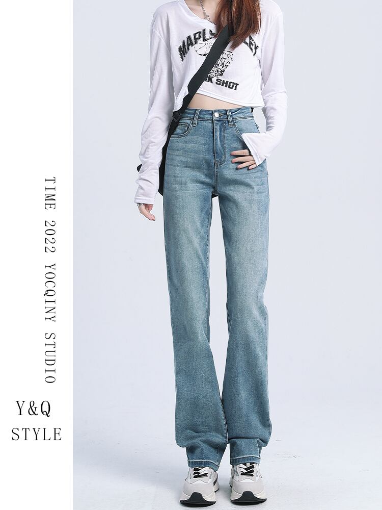 ストリート ストレート ジーンズ女性の 2022 新しいハイウエスト ストレッチ スリム シガレット パイプ パンツ床を拭くオールマッチ youqi52142406414
