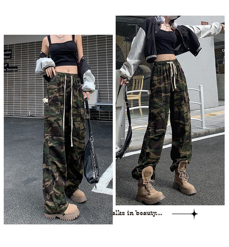甘涼風 個性 迷彩 オーバーオール ワイドレッグ ビッグポケット アウトドア キャンプ風 ストレート レース カジュアル ジーンズ レディース 大人ガーリー スウィート キュート ワイドパンツ youqi51505430470