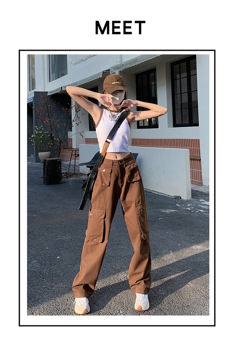 ブラウン オーバーオール デニム レディース ストレート ルーズ ルーズ 2022年 初秋の新作 薄手 たるみ ワイドレッグ モップパンツ 秋服 オータム 秋物 youqi80896483291