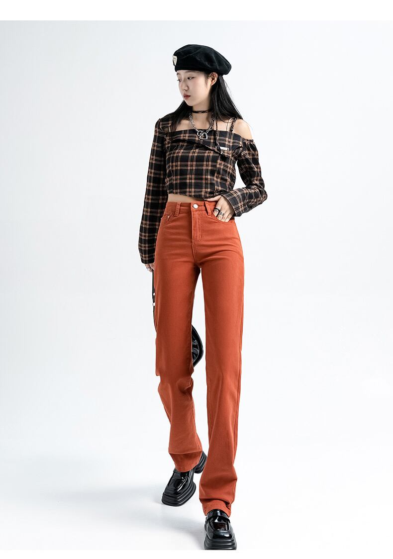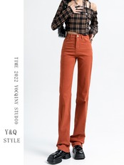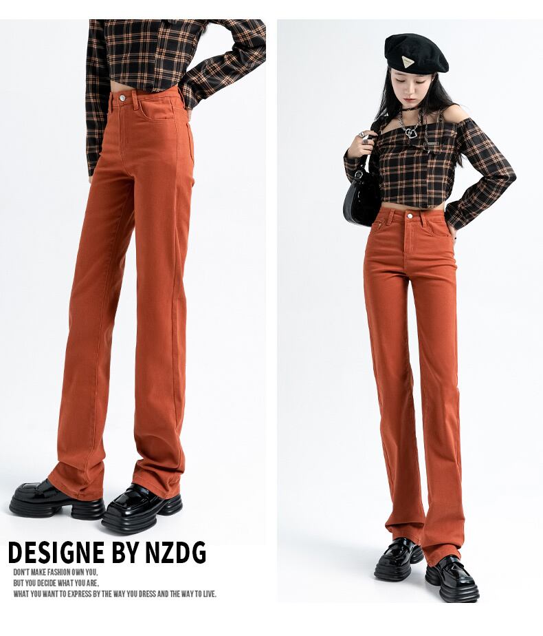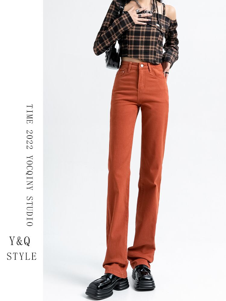 アメリカのハイストリート春と秋のスモール ストレート ハイ ウエスト ジーンズ女性薄いルーズ シガレット パンツ伸縮性のある小さなオレンジ赤 ハイウェスト エラスティック スプリング 春物 オータム 秋物 youqi54984867128