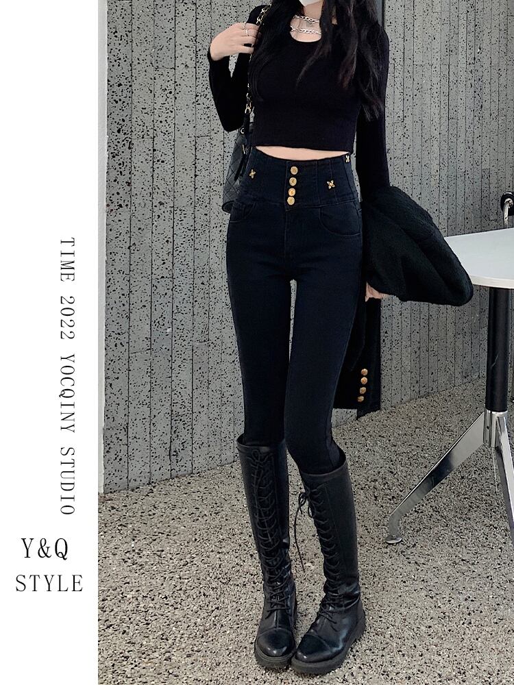 2022 秋の新作 ins 弾性自己修養ハイウエストペンシルパンツ黒スリムジーンズ女性のヒップリフトオールマッチ ブラック エラスティック 伸縮 オータム 秋物 youqi91708228121