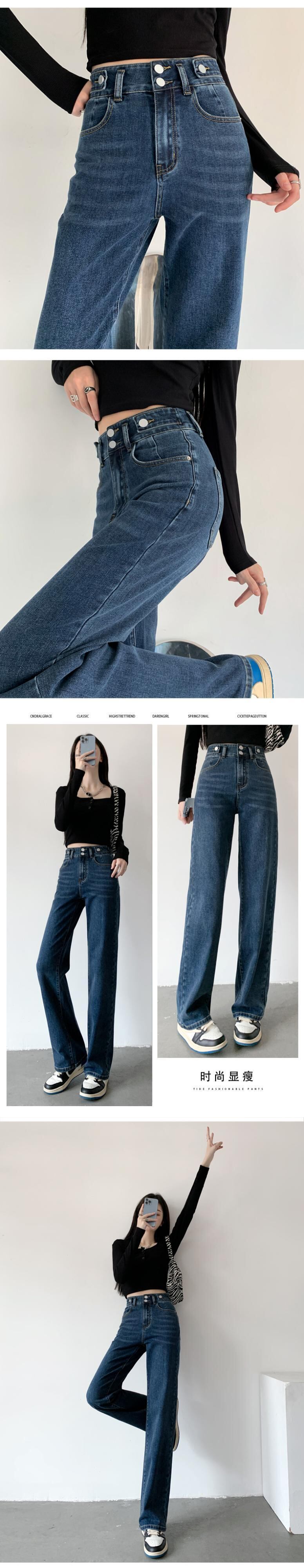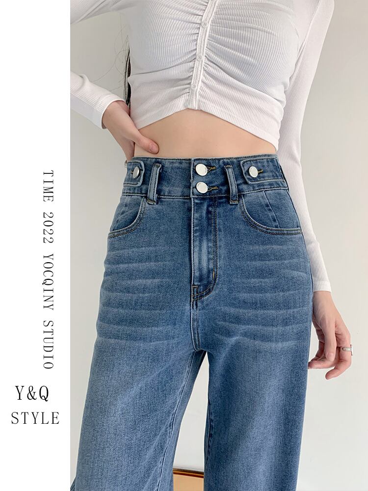 アメリカン ストリート レトロ ブルー ハイウエスト ジーンズ レディース ウエスト調節可能 ルーズ ストレートレッグ パンツ モップパンツ 薄手 アジャスタブル youqi78089803378