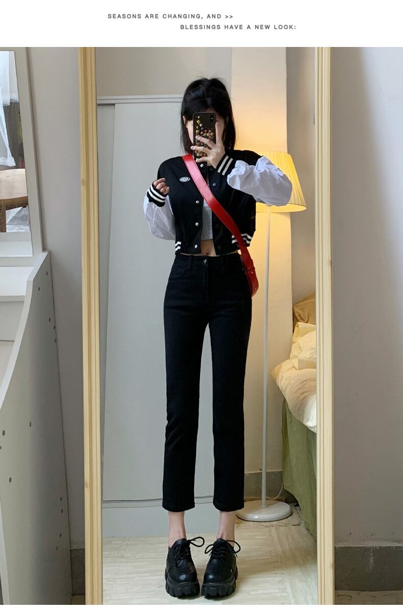 ブラックストレートレッグパンツデニムレディースハイウエストルーズ2022新スタイル痩身八点小オールマッチ九点タバコパイプパンツ ハイウェスト youqi44221768158