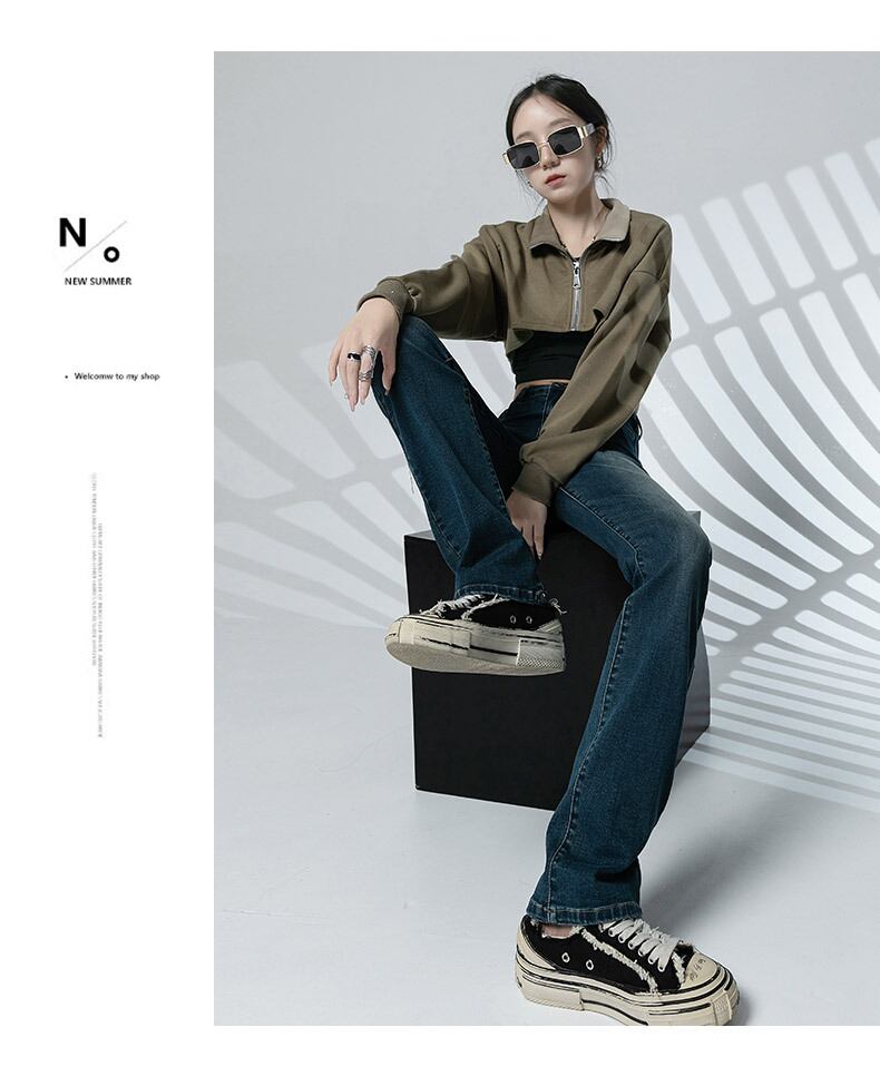ストリート ストレート オールマッチ ジーンズ 女性用 ハイウエスト スリム シガレット パンツ スモール トール 秋 新 弾性 モップ エラスティック 伸縮 オータム 秋物 youqi40199407442