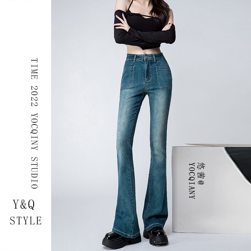 ストリートウィーブジーンズ女性のスリムフィット 2022 春と秋のスタイルの細いウエストホーンヨーロッパとアメリカのホットガールズモップパンツトレンド スプリング 春物 オータム 秋物 ヨーロピアン youqi9654597913