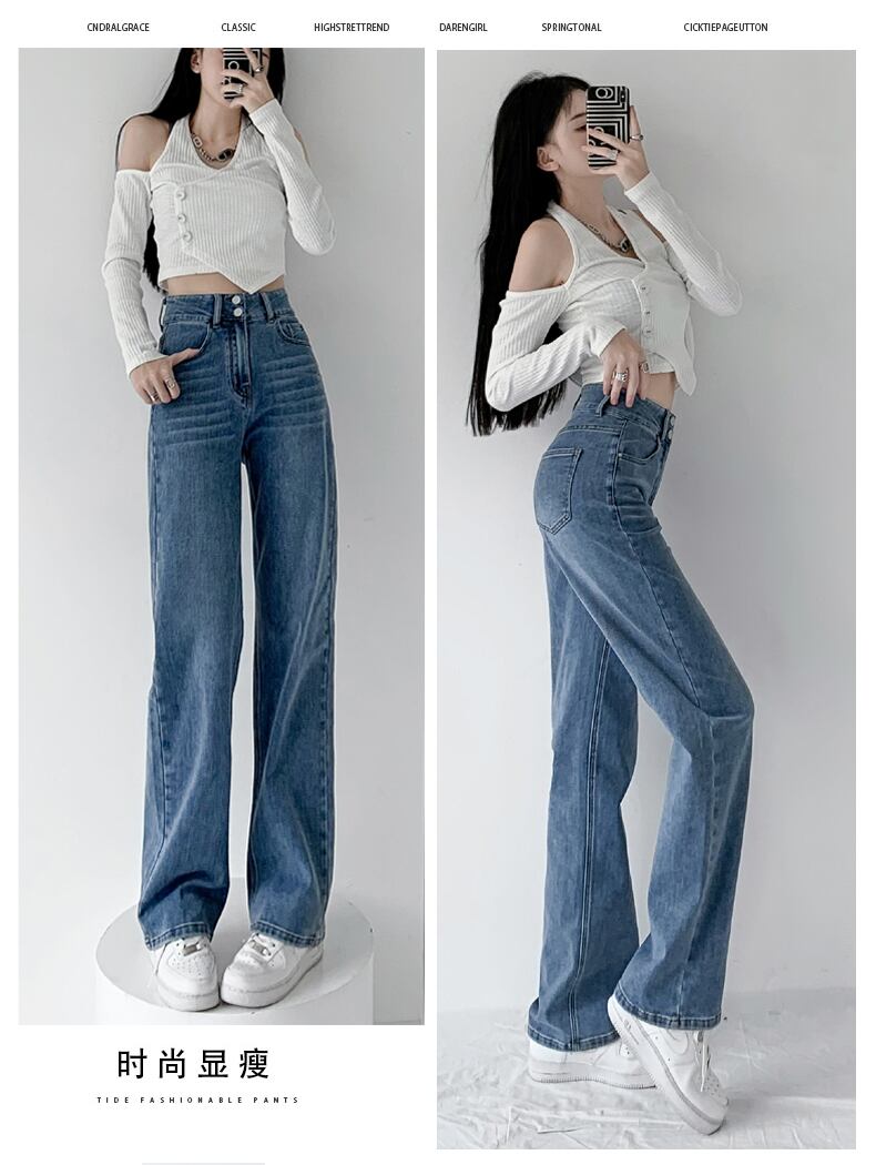 ダークブルーハイウエストワイドレッグジーンズ女性の春と秋のインタイドストレートチューブゆったりと薄い垂れ下がった床のデザインセンスニッチV スプリング 春物 オータム 秋物 youqi78375798197