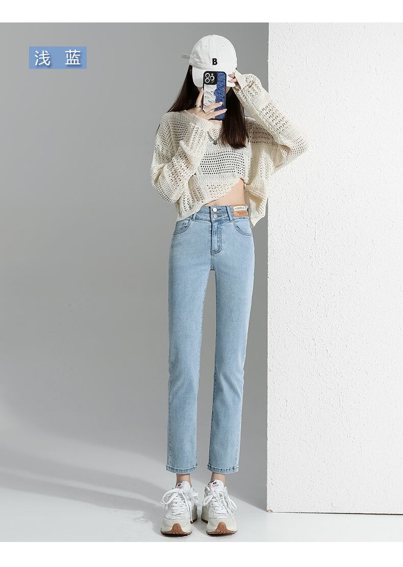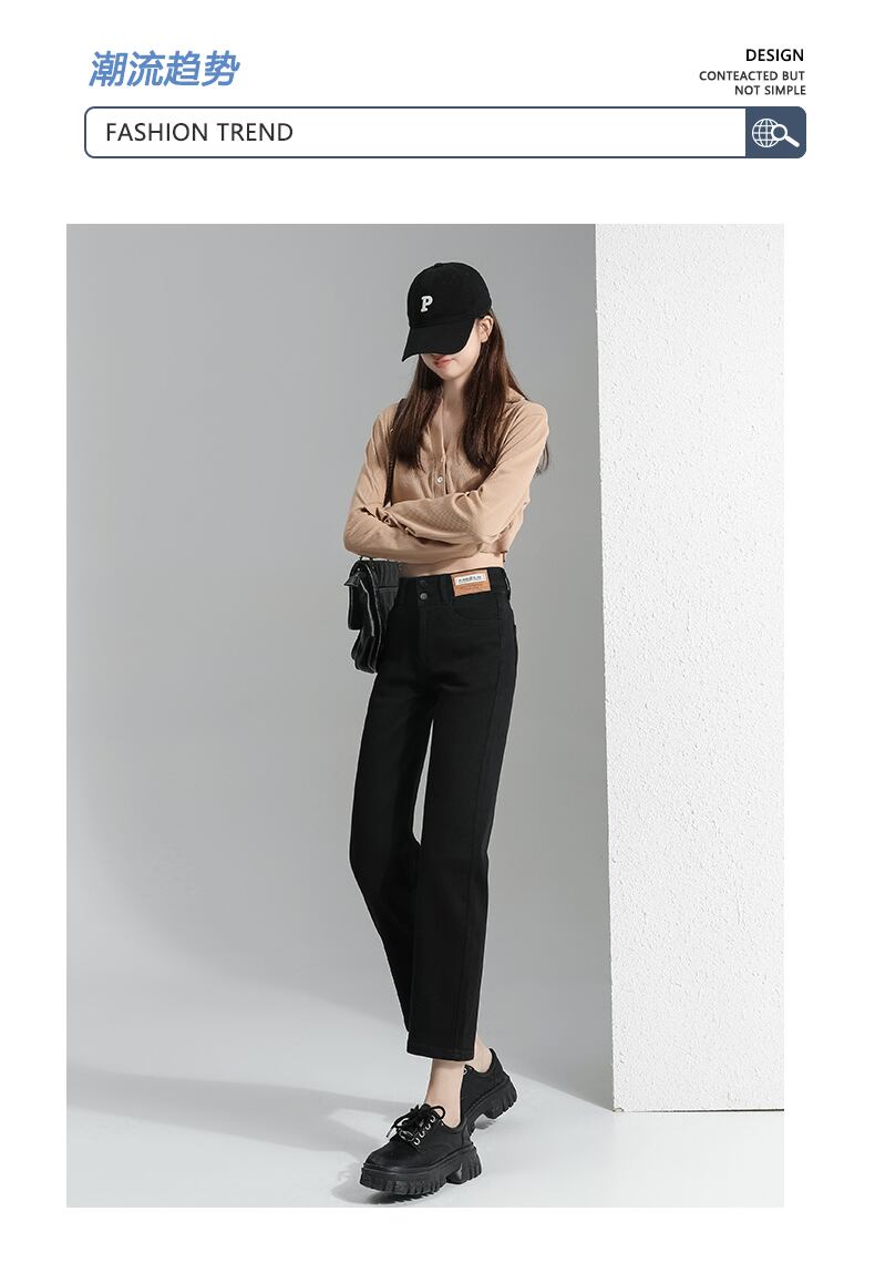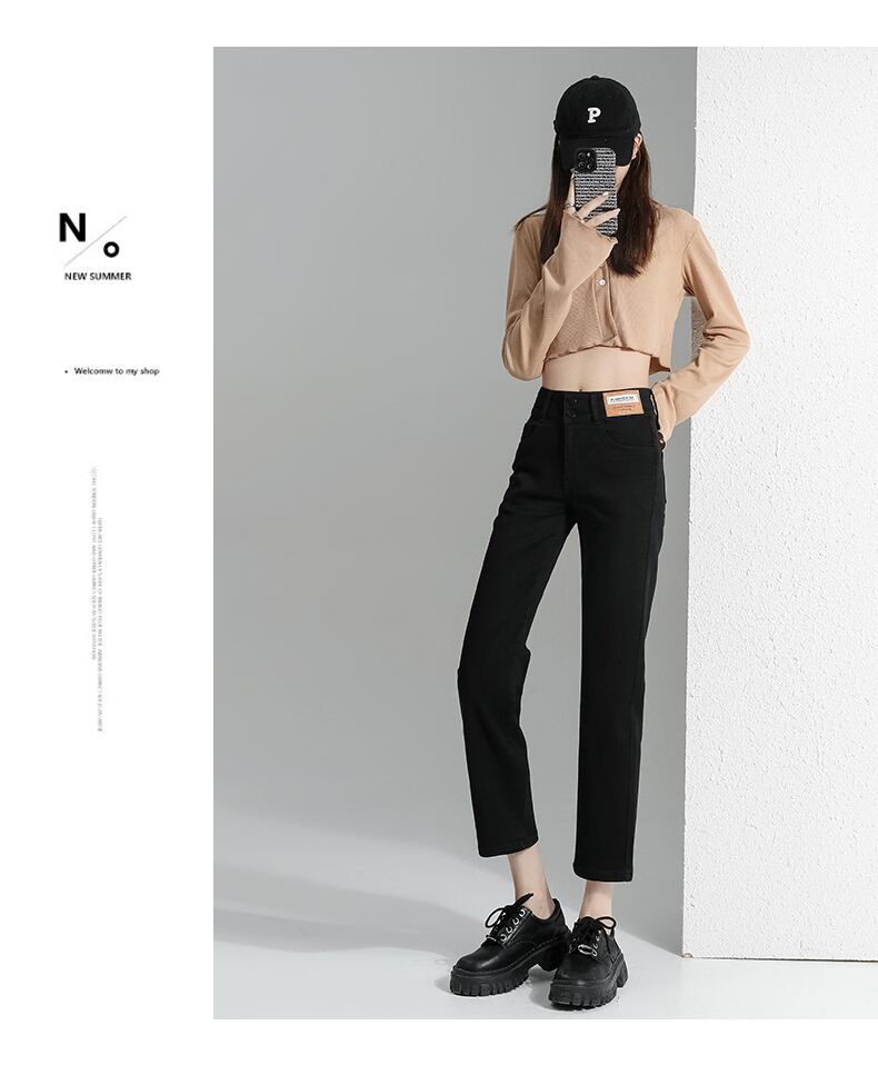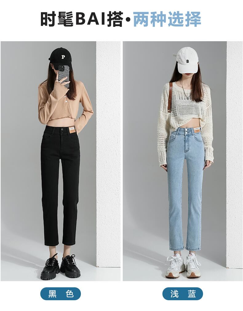 ウエストストレートパンツ ダブルボタン ストレッチ ジーンズ レディース シガレットパンツ ブラック 薄手で年齢を問わない万能パンツ youqi13533749432